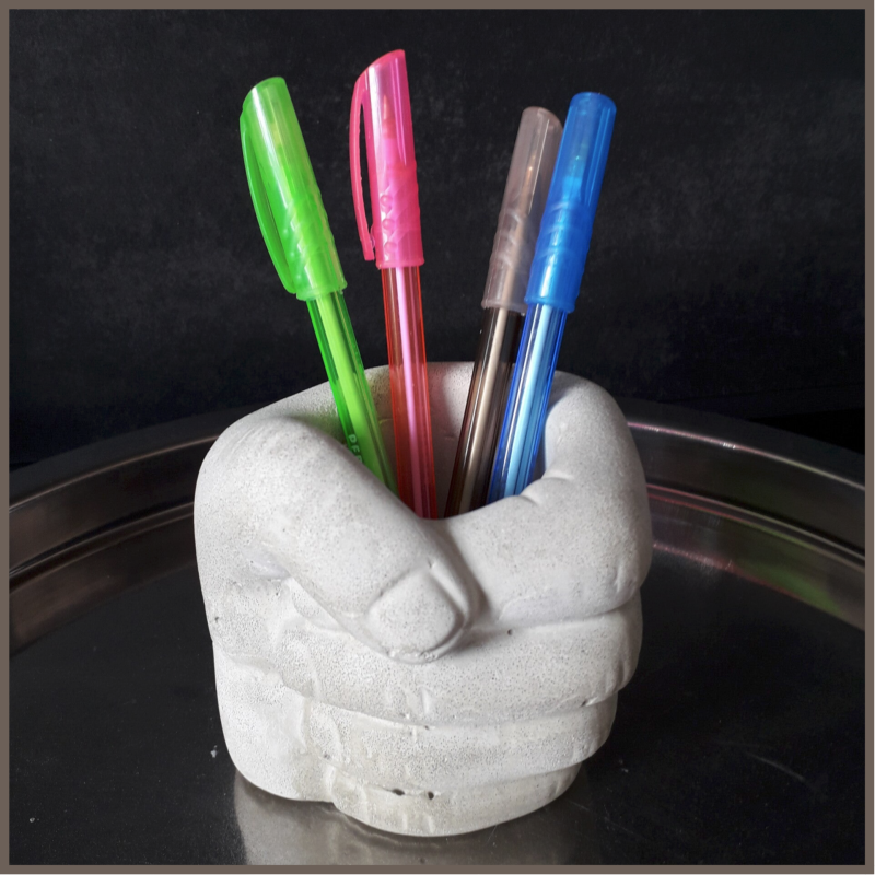 Ce pot en jesmonite à la forme d'une main est pratique pour y mettre des crayons mais aussi un jolie bouquet de fleurs séchées. Chaque pièce est fabriquée à la main par conséquent les couleurs peuvent varier légèrement d'un modèle à l'autre.