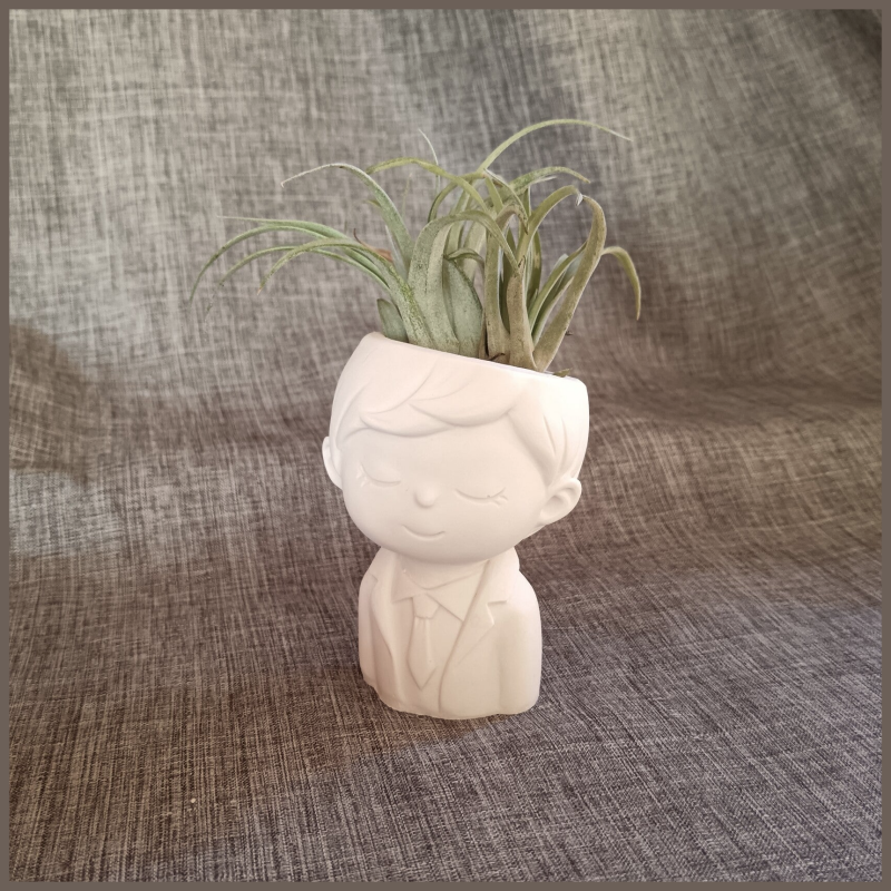 Ce joli petit garçon en jesmonite sera parfaite pour y mettre des dragées lors d'un baptême ou pour une plante. Chaque pièce est fabriquée à la main par conséquent les couleurs peuvent varier légèrement d'un modèle à l'autre.